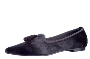 Van ponyhaar op een spitse leest is deze ballerina overal onder te dragen.