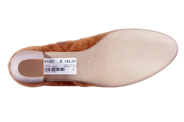 Kort enkellaarsje op hak van 6 cm, zowel in suède als leer. Leuk onder een| skinny of een jurkje. In suède panterprint, blauw, groen en in cognac. De leest| valt vrij ruim dus als u halve maten draagt kunt u naar beneden afronden.|
