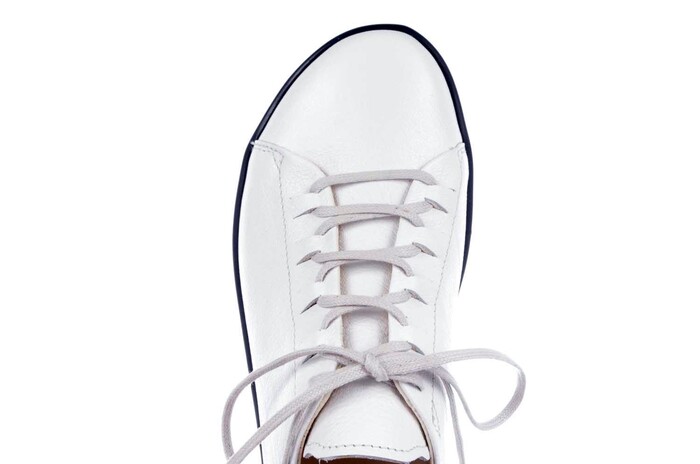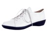 Charmant veterschoentje op ronde leest met prettige ruimte voor de teen. Iets| verhoogde hak en met verwisselbaar voetbed. Dit model is er in wit leer en in| blauw nubuk met gaatjes.|