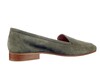 Basic instappertje zonder franje straalt tijdloze klasse uit. In  casual uitvoering van ongevoerd suède en aansprekende maar  gedempte kleuren groen, oker en oranje. Geeft een leuk accent aan je outfit. Het zahchte ongevoerde suède kan prima met blote voeten gedragen worden.