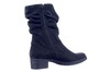 Kuitlaars met gerimpelde schacht en prettig loophakje van 3 cm. Uitgevoerd in| zwart nubuk met dunne wollen voering. Behaaglijk warm maar niet broeierig.|