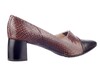 Wat hoger gesloten pump in combinatie van fijne bruine croco print met zwart| neusje en zwarte hak van 5 cm. Tijdloos chique en comfortabel. Het splitje in| het frontblad geeft deze klassieker net die nonchalante twist.|
