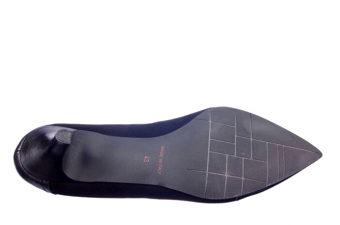 Elegant retropumpje op queeniehak van 3,5 cm in geraffineerde uitvoering van| zwart suede en zwart leer met bruin python leer. Combineert heel mooi met| zwart/bruine kleding. De spitse leesten komen weer terug en er is ook nog een| variatie met lagere uitsnede. "Quality never goes out of style" is het motto van| ons private label. Het bijpassende tasje maakt uw outfit compleet.|