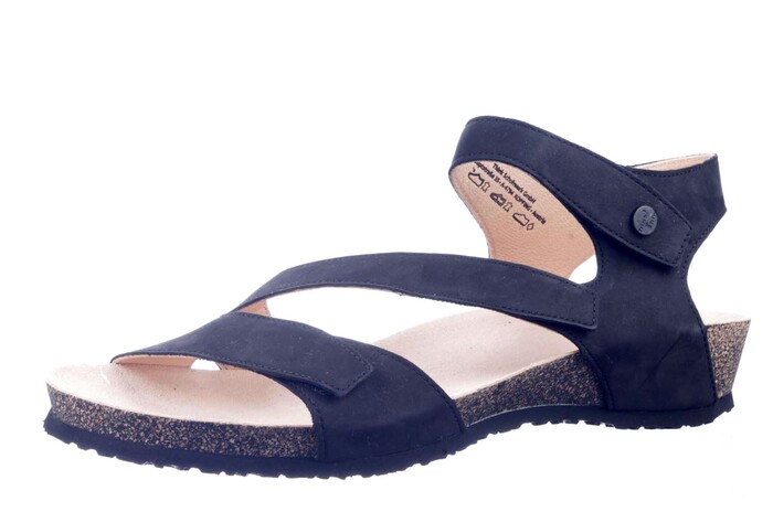 Voetbedsandaal van Think met drie klittebandsluitingen, dat klinkt heel| degelijk maar in deze uitvoering levert dat een heel charmant sportief model| op. Past altijd en loopt super comfortabel. We kochten drie uitvoeringen voor u| in: maisgeel- en blauw leer en in zwart nubuk.|