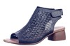 Opengewerkte hoogfrontsandaal met klittebandsluiting over de heel. Comfortabel| zacht voetbed en blokhak van 4,5 cm, in zwart, cognac en rood zonder perforatie.|