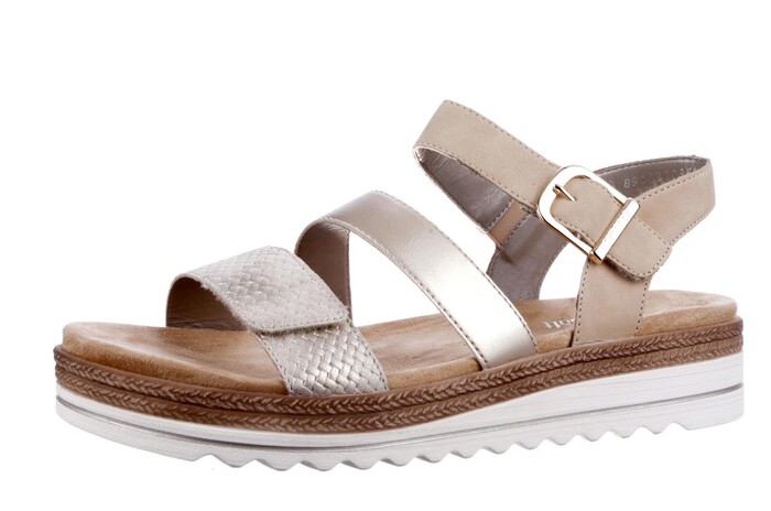 Remonte levert al sinds 1876 schoeisel met populaire comfortbreedtes, verwisselbare inlegzolen en superflexibele buitenzolen. Ieder seizoen is de collectie weer uitegebreider en ook de keuze t/m maat 45 neemt toe. De meeste modellen zijn sportief maar Remonte biedt ook altijd een aantal aantrekkelijke dress items. De prijzen zijn heel vriendelijk en de kwaliteit uitstekend voor dit prijsbereik. Dit sandaaltje met 3 banden heeft op de wreef en de voorvoet een klittebandsluiting. Verkrijgbaar in mooie zachte natureltinten en in vrolijke pink-oranje combi. De zon aan je voeten!