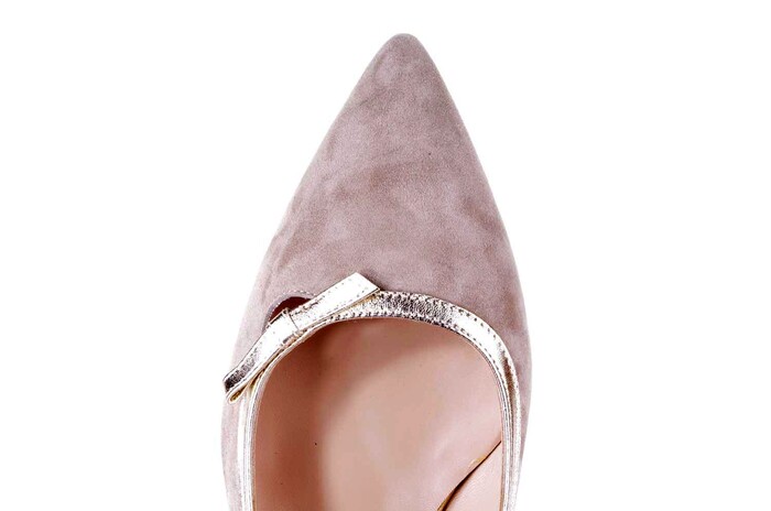 Deze klassieke slingback in chique uitvoering van beige suède met goudleren| afwerking is een juweeltje uit onze voorjaarscollectie. Super vrouwelijk en| elegant en op een prima loophakje van 5 cm. Dit model is er ook in lichtgrijs| suède met python detailering.|