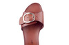 Dr Scholl maar dan in de hippe variant. Lekker plan met kurk voetbed en leren| top, in cognac en in donkerbuin leer.|