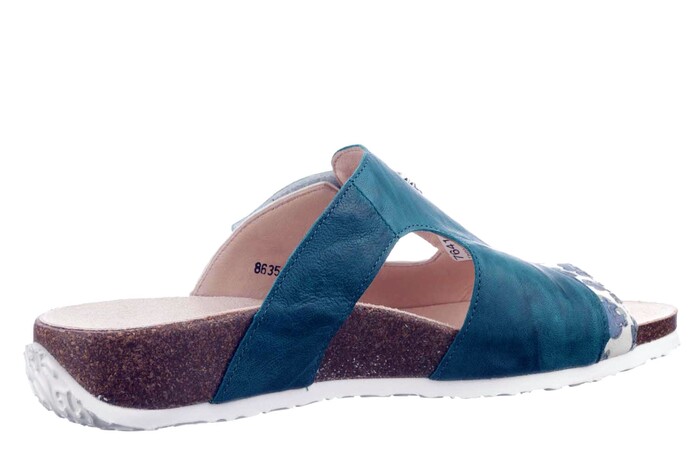 Eén van de klassiekers van Think deze voetbedslipper met verstelbare band en klittebandsluiting. Het voetbed is van kurk met suède toplaagje, super comfortabel. Dit seizoen in zwart/wit en grijs/wit combinatie en in volijk rood-oranje. De ontwerpers bij Think! weten met onuitputtelijke fantasie steeds weer creatieve uitvoeringen te bedenken.