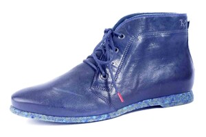 Ooit wel een verliefd geworden op een zool? Gladde veterboot op dunner flexibel| zooltje, in kiezelsteenmotief, voor het najaar en zachter winterweer. Bijzonder| detail is de 'blinde' nestel waardoor de veter oogjes| lijkt te missen. In donkerblauw leer in taupe suède.|