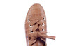 Trendy veterschoen op dikke zool. De grote nestels en de dikke lintveter versterken de casual robuuste look van dit model. OIn offwhite en in cognac,