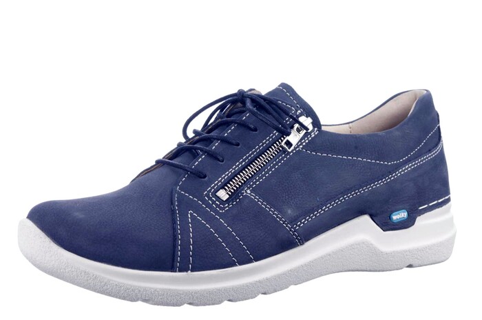 Sportieve veterschoen op ronde leest met comfortabele teenruimte en rits opzij| voor makkelijke instap. Uitgevoerd in frisse nubukkleuren groen en jeans met| decoratieve contrast stiksels.|