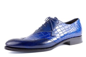 Dit handgemaakte model van Harris uit Florence (sinds 1913) is een eigentijdse| vertaling van de klassieke Oxford; zeer exclusief in groene crocoprint;| vergelijkbaar broquemodel in blauw.|